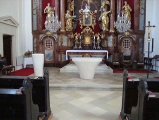 Altarraumgestaltung Haselbach N.Ö. 2009 spanischer Kalkstein