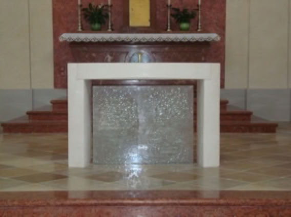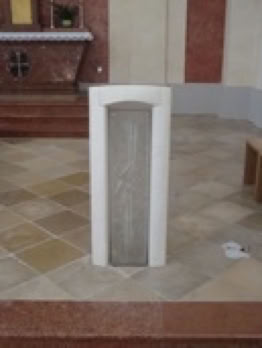 Altarraumgestaltung Steinabrückl N.Ö. 2009 Donaukalk, Glas, Messing, Eiche
